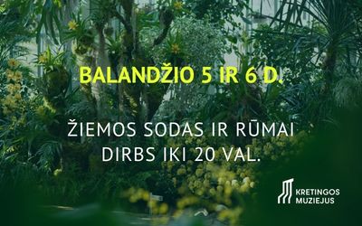 Balandžio 5–6 dienomis Rūmai ir Žiemos sodas lankytojų lauks iki 20 val.